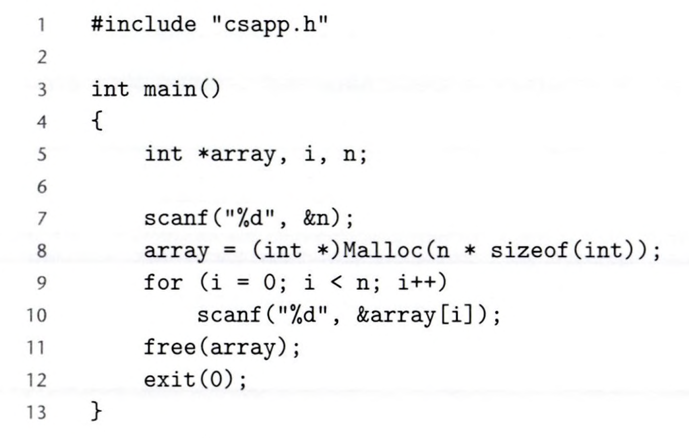 -> 프로그램이 실행되는 도중에 추가적인 가상메모리가 필요해질 경우, 동적 메모리 할당기를 사용하는 것이 더 좋다