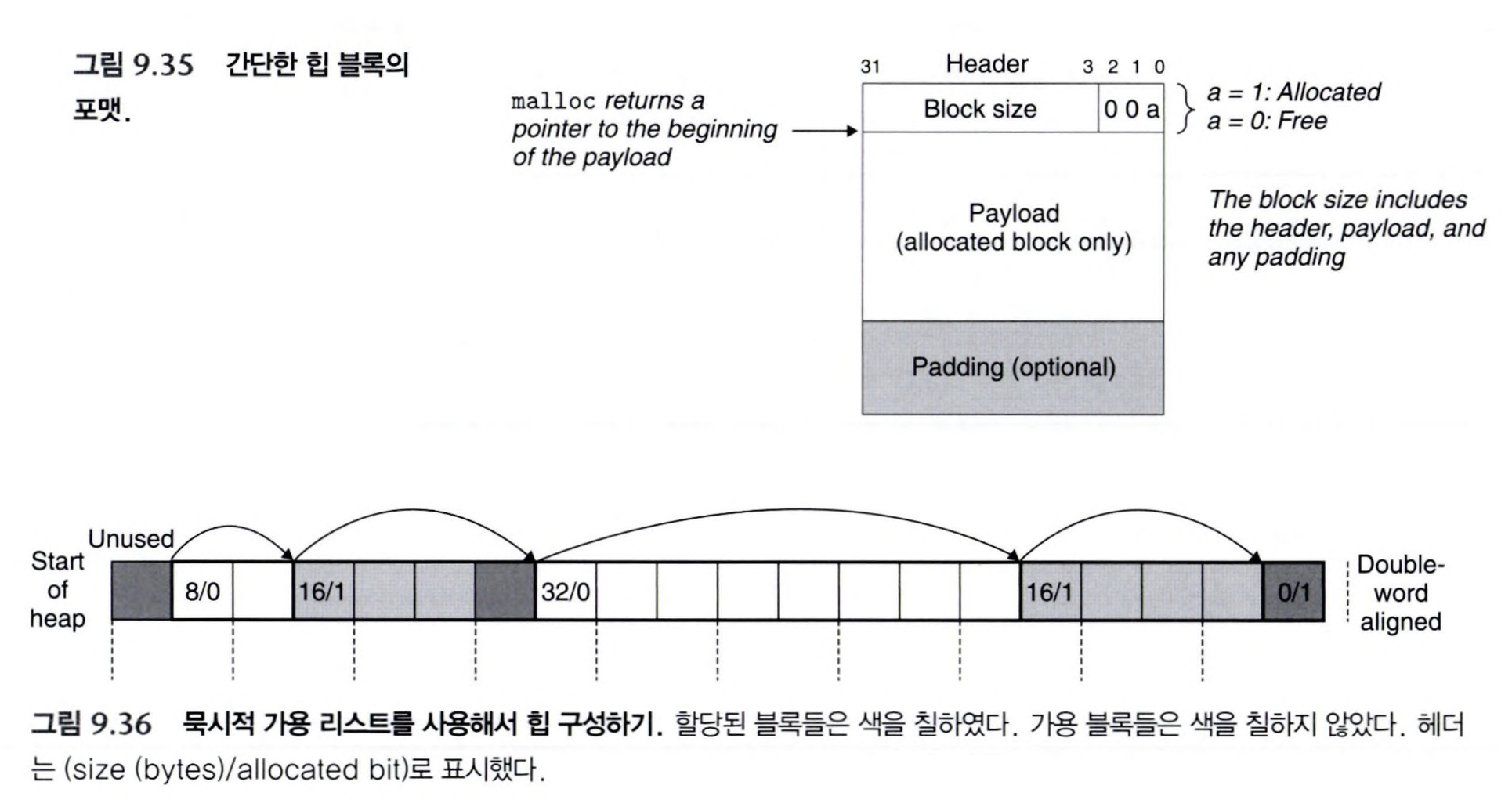 모든 실용적인 할당기는 블록 경계를 구분하고, 할당된 블록과 가용 블록을 구분하는 데이터 구조를 필요로 한다