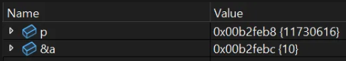 a의 주소를 가리키고 있었을 p가 포인터에 -1연산을 하여 감소되어있는 것을 확인할 수 있다