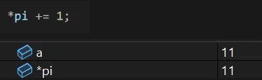 int a를 선언하고 int* pi에 a의 주소를 받아서 포인터 변수 pi를 통해서 a를 변경해 주고 있다