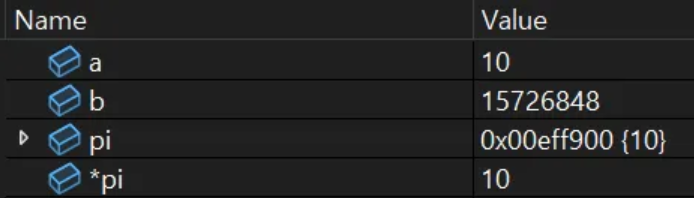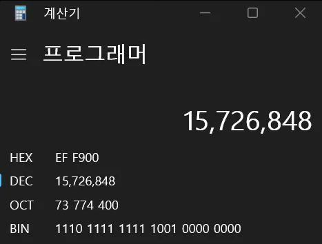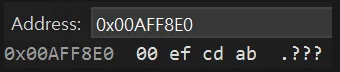 포인터 pi는 a의 주소를 가리키고 있고 해당 주소로 가보면 위에서 넣어준 0xABCDEF00이 연속된 메모리에 데이터를 저장하는 순서 규칙 중 리틀엔디안을 따라 거꾸로 저장되어 있는 것을 볼 수 있다