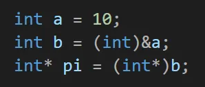 이는 접근이 유효한 메모리이기 때문에 int*형 변수 pi에 int형 변수인 b의 값이 들어갔지만