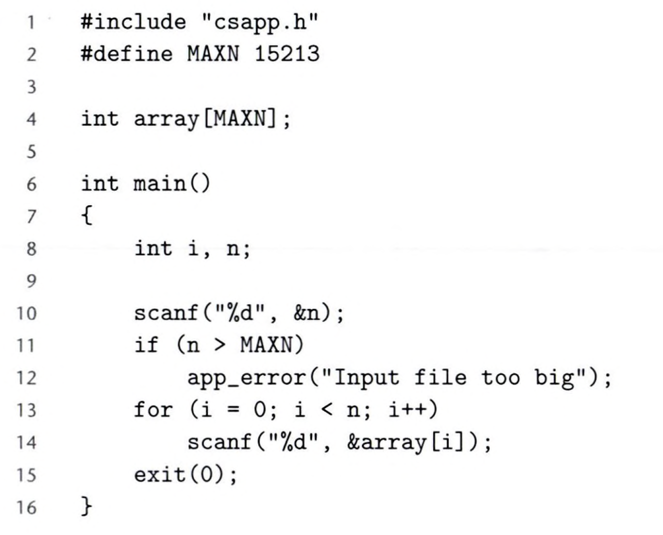 더 나은 방법은 n 값을 알 수 있을 때 배열을 런타임에 동적으로 할당하는 것이며, 이 방법으로 배열의 최대 크기는 가용한 가상메모리의 양에 의해서만 제한된다