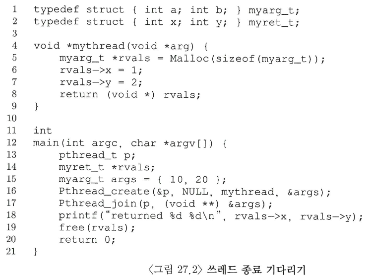 pthread_join() 루틴은 그 값에 대한 포인터를 전달하여 유연하게 쓰레드를 활용할 수 있게 한다
