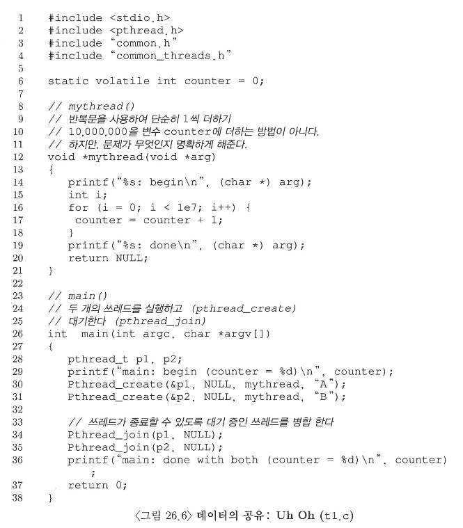 이 쓰레드들이 메모리에 접근하는데, 접근하는 것을 조정하지 않으면 프로그램이 예상처럼 동작하지 않을 수 있다