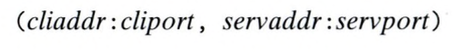 연결은 두 개의 종단점의 소켓 주소에 의해 유일하게 식별된다, 소켓 쌍은 tuple 로 나타낸다