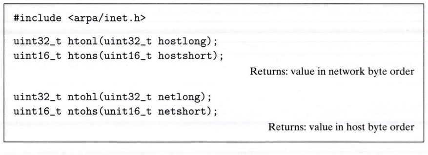 네트워크와 호스트 바이트 순서 간의 변환을 위해 Unix 는 다음과 같은 함수를 제공한다