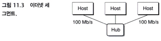 이더넷 세그먼트 Ethernet Segment 는 몇 개의 전선들과 허브로 구성되며, 대역폭은 대게 100 Mb/s 나 1 Gb/s 이다