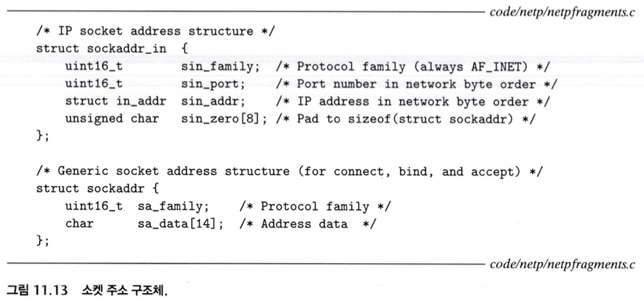 connect, bind, accept 함수는 프로토콜에 특화된 소켓 주소 구조체를 가리키는 포인터를 필요로 한다
