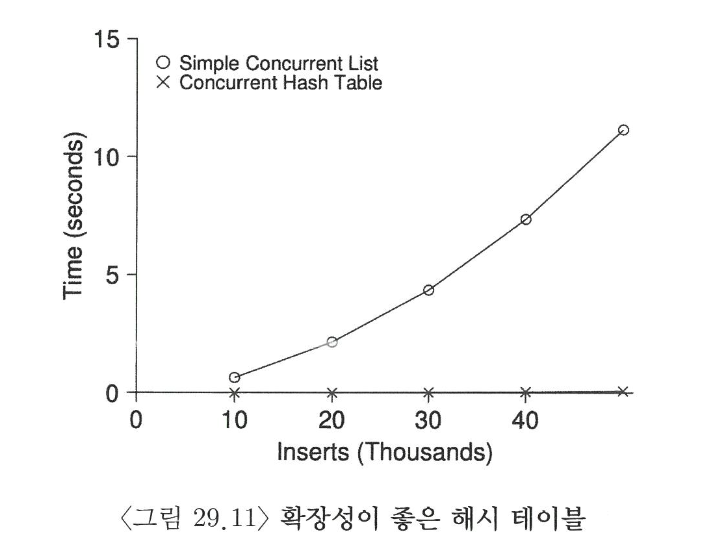 병행 해시 테이블은 병행성이 매우 좋지만, 연결 리스트는 확장성이 매우 떨어진다