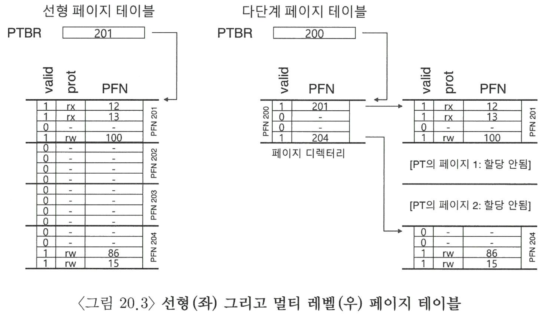 🐣 페이지 테이블은 가상 주소를 물리 주소로 변환하기 위한 각 가상 페이지에 대해 물리 메모리 상의 페이지 번호를 기록하는데