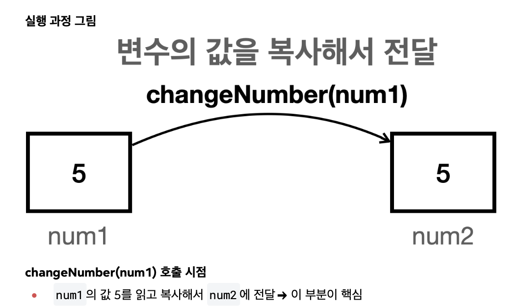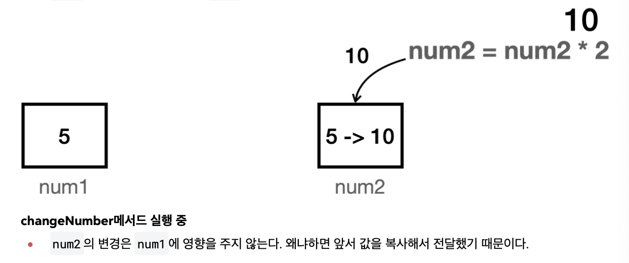 여기에서 4번의 num1 은 10 이 아니고 5 가 나온다 - num2 의 변경은 num1 에 영향을 주지 않는다