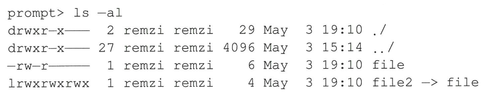ls -l 을 출력한 결과의 앞 부분 중 맨 앞 글자는 파일의 종류를 나타내고 ( - 일반 파일, d 디렉터리, 1 심볼릭 링크 )