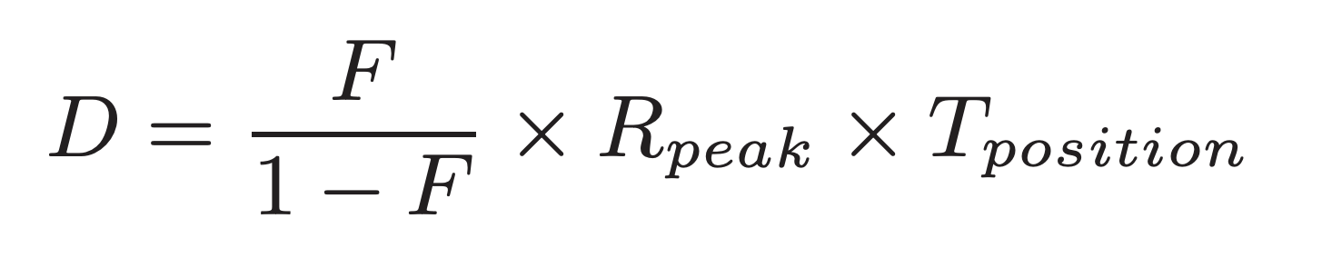 위치 잡기 시간을 Tposition초, 디스크 전송 속도는 RpeakMB/s, 세그먼트 크기 D MB, 데이터 청크를 쓰는 데 소요되는 시간 Twrite, 실제 쓰기 속도 Reffective, 최대 속도의 특정 비율 F 라고 하면 Twrite = Tposition + D/Rpeak 이고, Reffective = F X Rpeak 이다