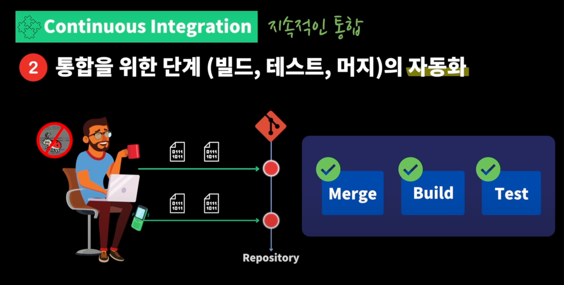2. 통합을 위한 단계 (Build, Test, Merge) 의 자동화