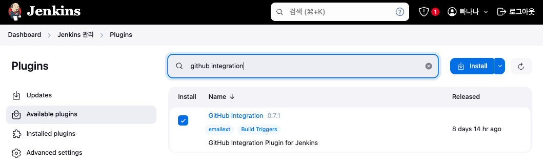 Git 설치 후 Jenkins Console 에서 Restart 해서