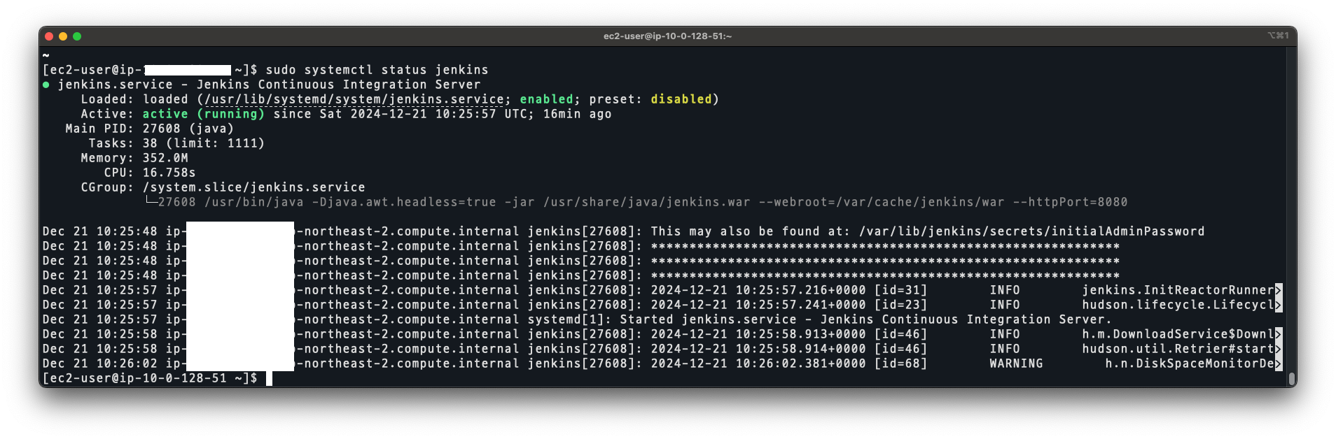 [ec2-user@ip- ~]$ ssh -i JenkinsKey.pem ec2-user@[Jenkins Private IP]