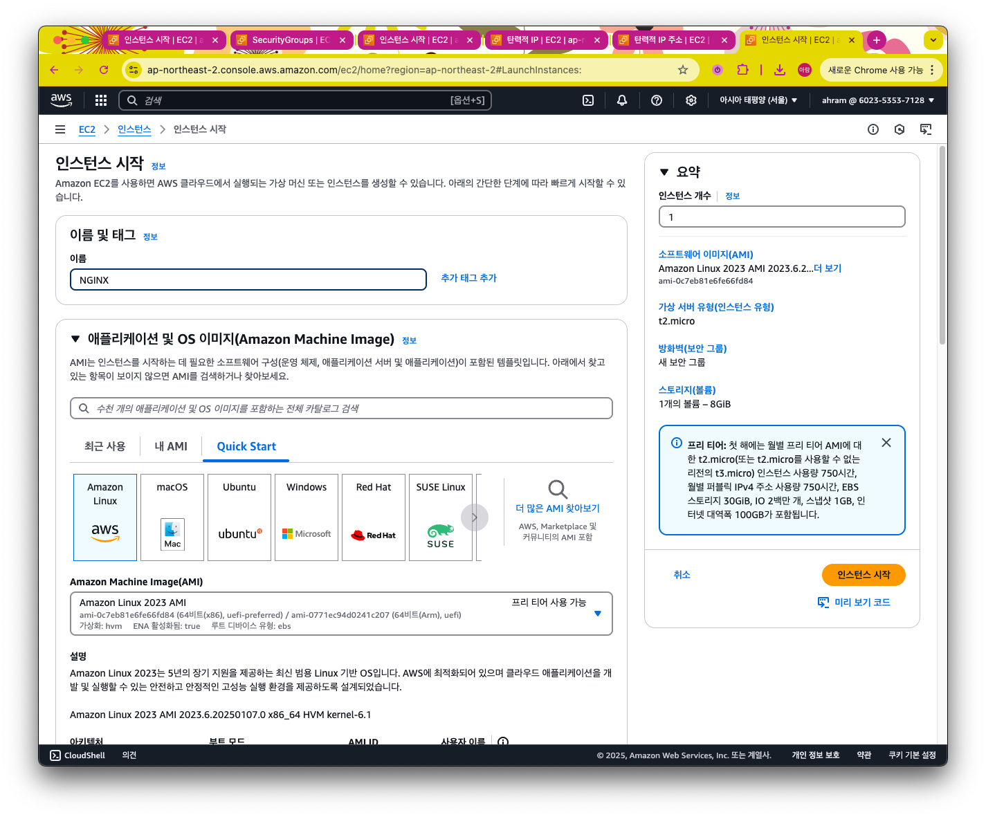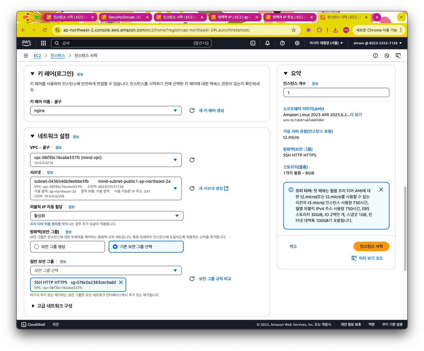 보안 그룹은 SSH, HTTP, HTTPS 로 설정했다