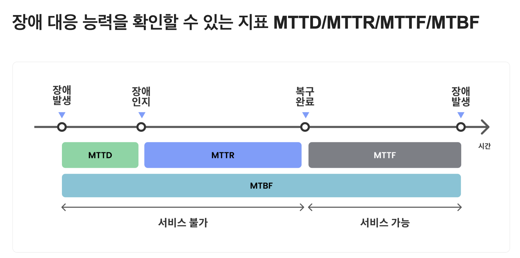 평균 가용 시간, 고장난 시스템을 수리하고 정상 작동 상태로 복원하는 데 걸리는 평균 시간을 측정하는 데 사용되는 지표