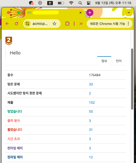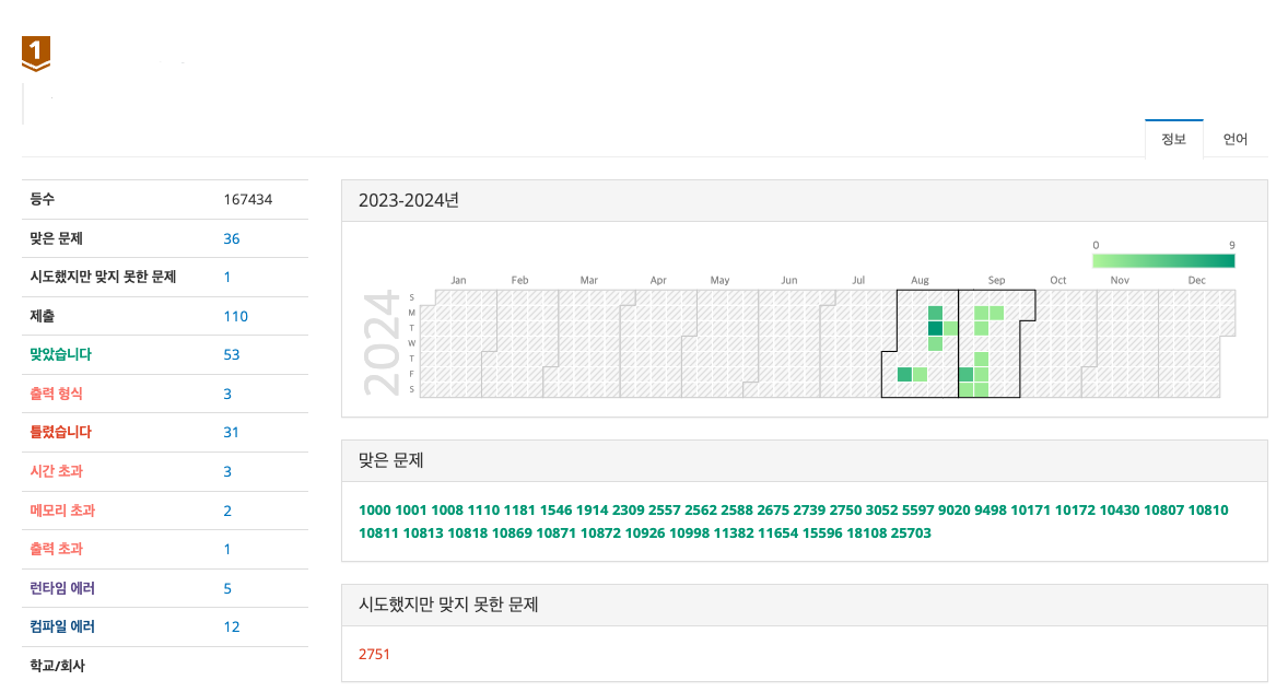 + 09/16 MON 몇 문제 더 풀긴 했지만 그새 레벨이 또 올랐다!