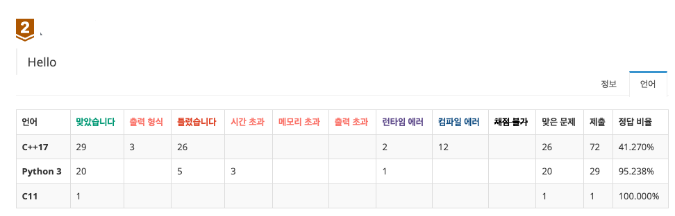 | 2557 Hello World | 기초(입출력) | 하 | ||