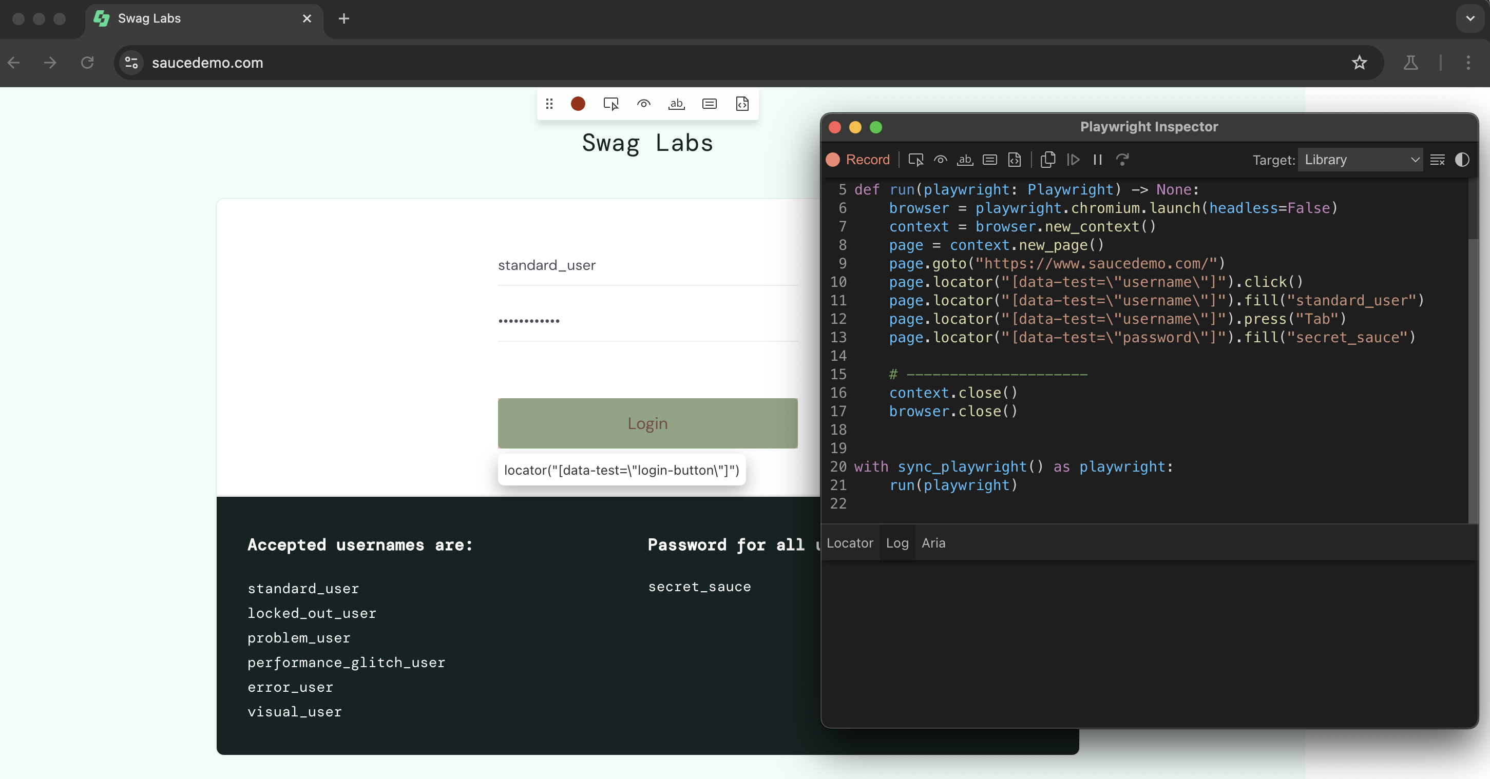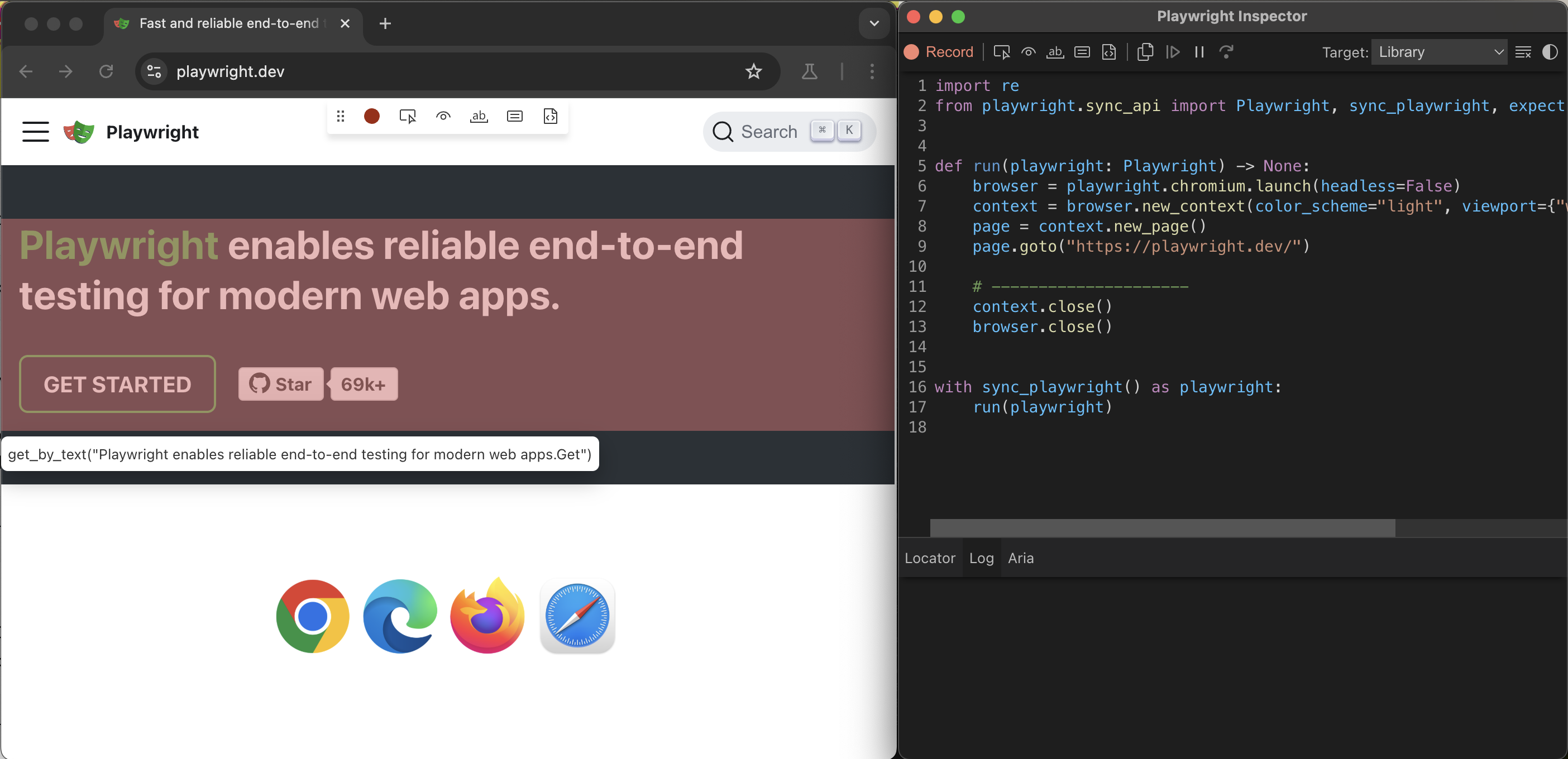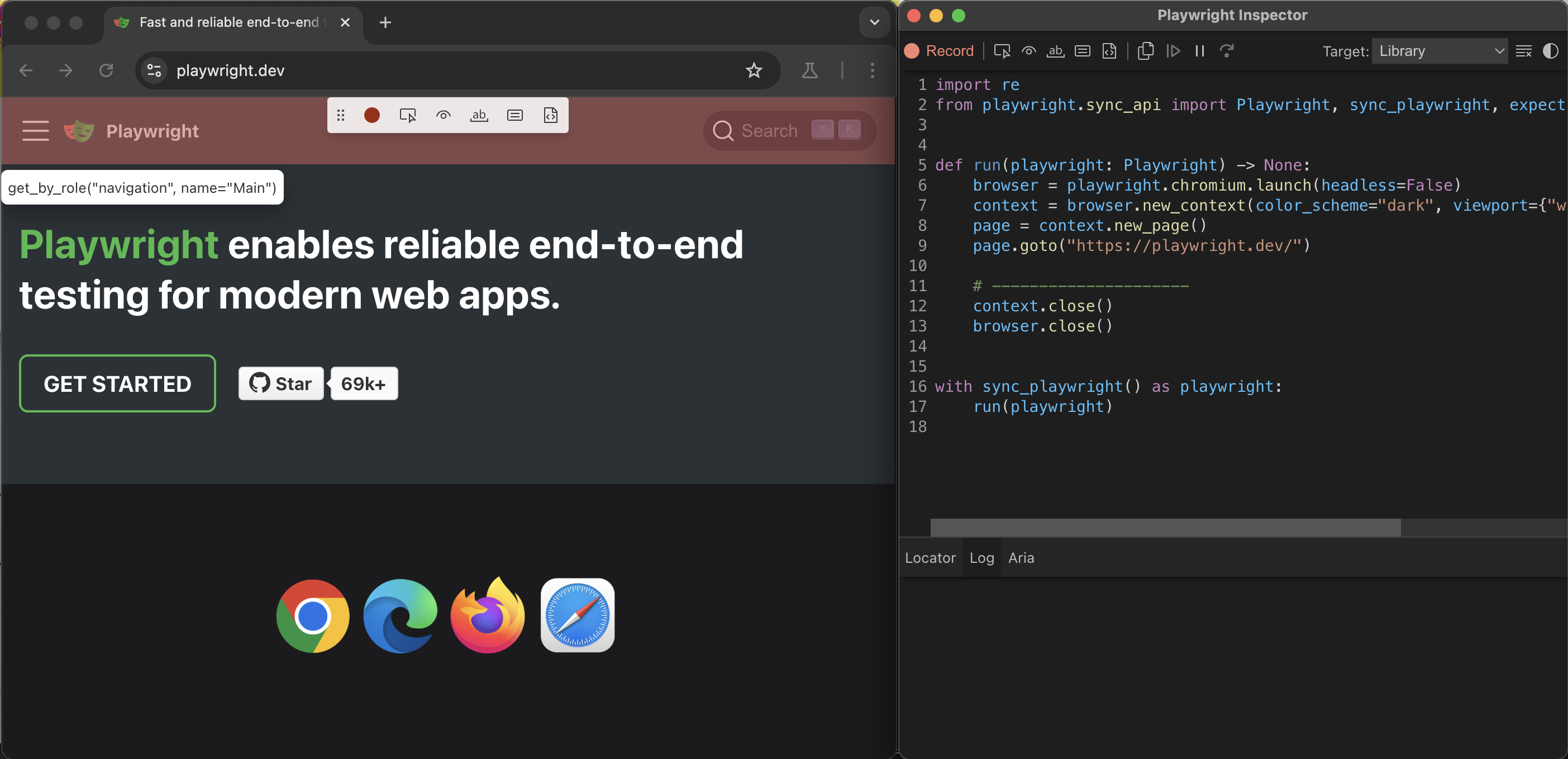 Inspector 는 Playwright 를 디버깅할 수 있도록 도와주는 GUI Tool 이다