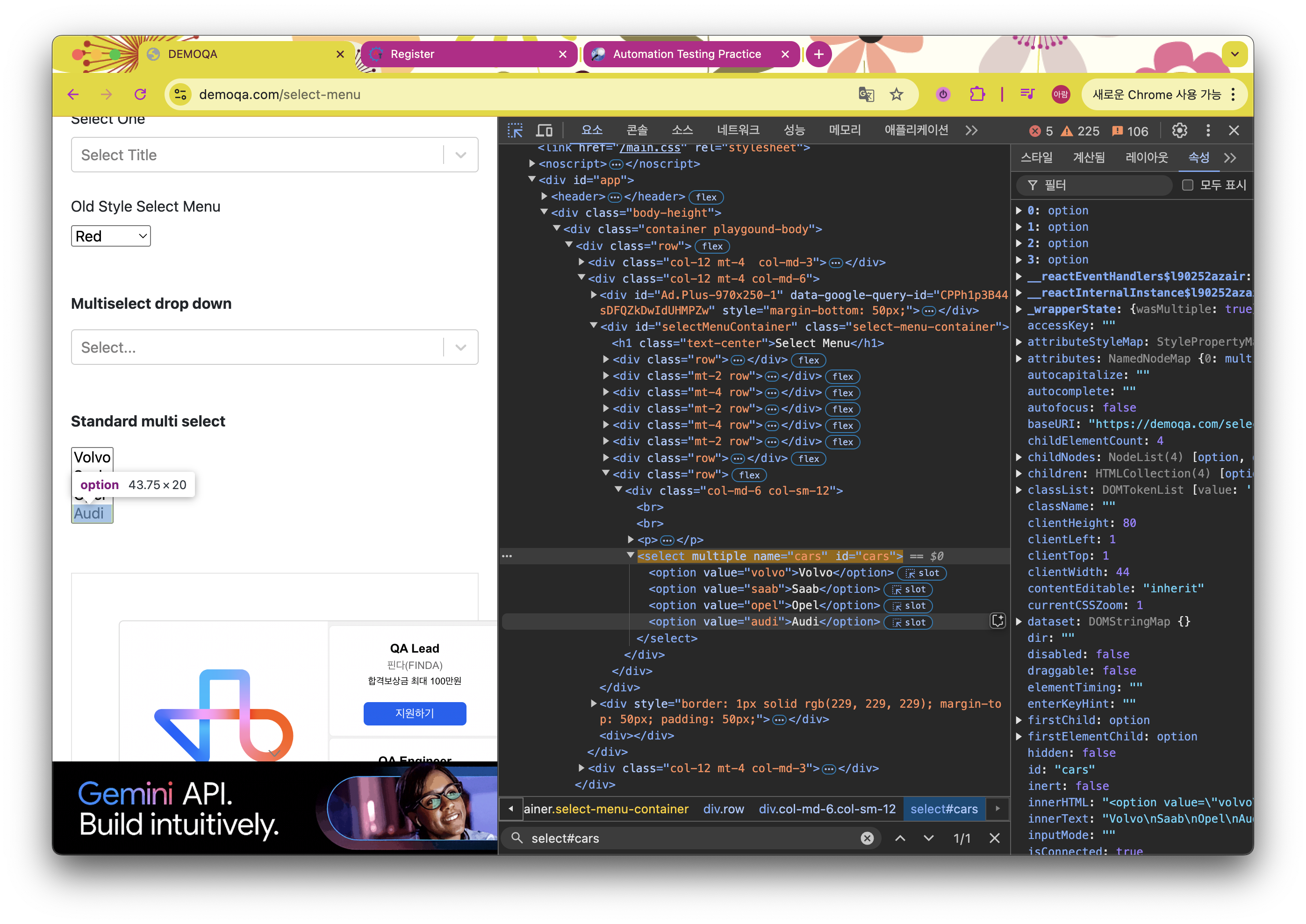 이 요소는 사용자가 여러 옵션을 선택할 수 있는 드롭다운 메뉴로, Standard Multi Select 항목에 해당한다