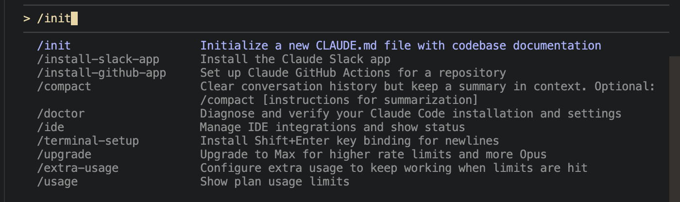 init 을 실행하면 Claude Code 가 프로젝트를 분석하고, CLAUDE.md 파일을 자동으로 생성한다
