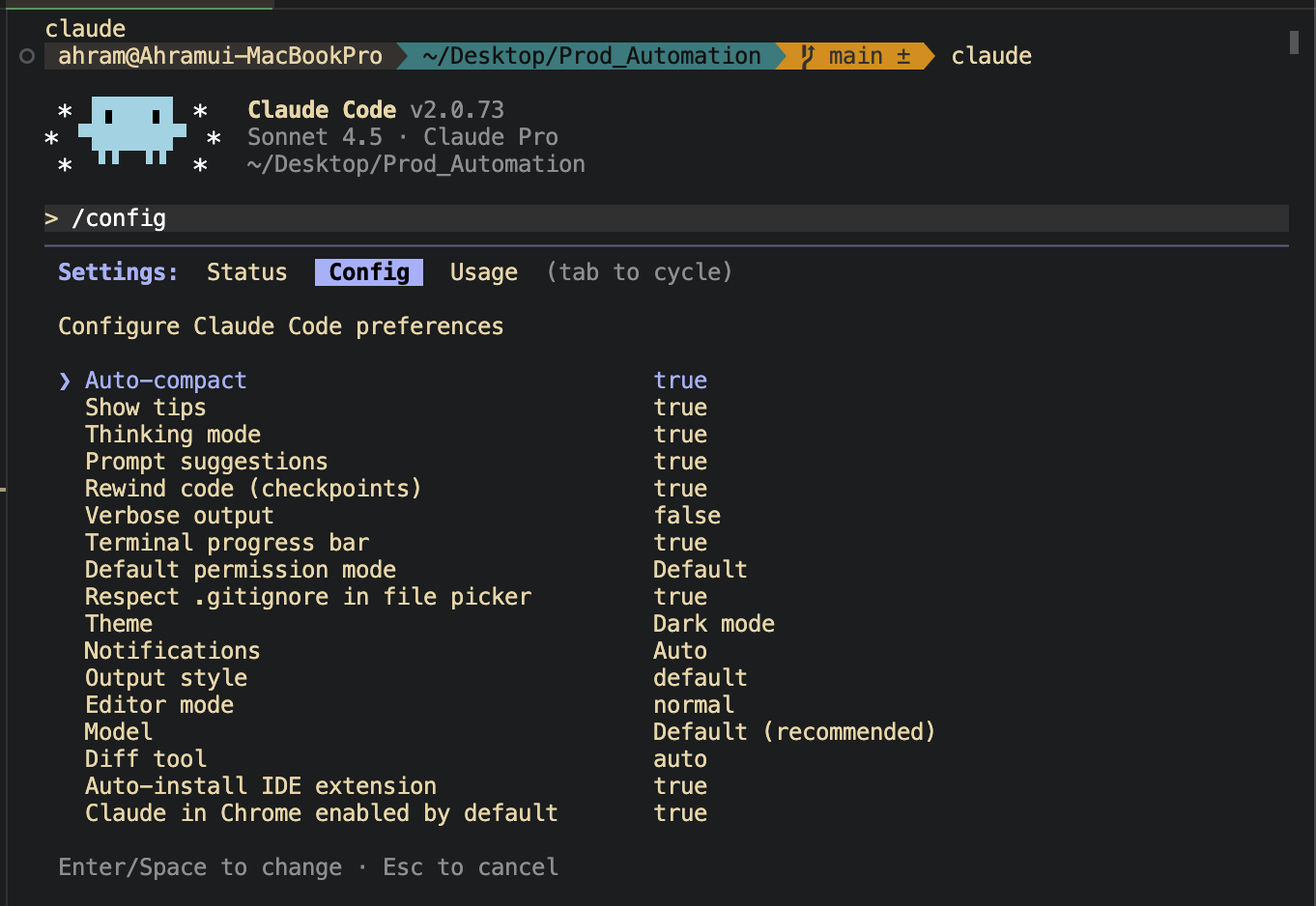 현재 사용 중인 Claude 모델을 확인하거나 변경할 수 있다