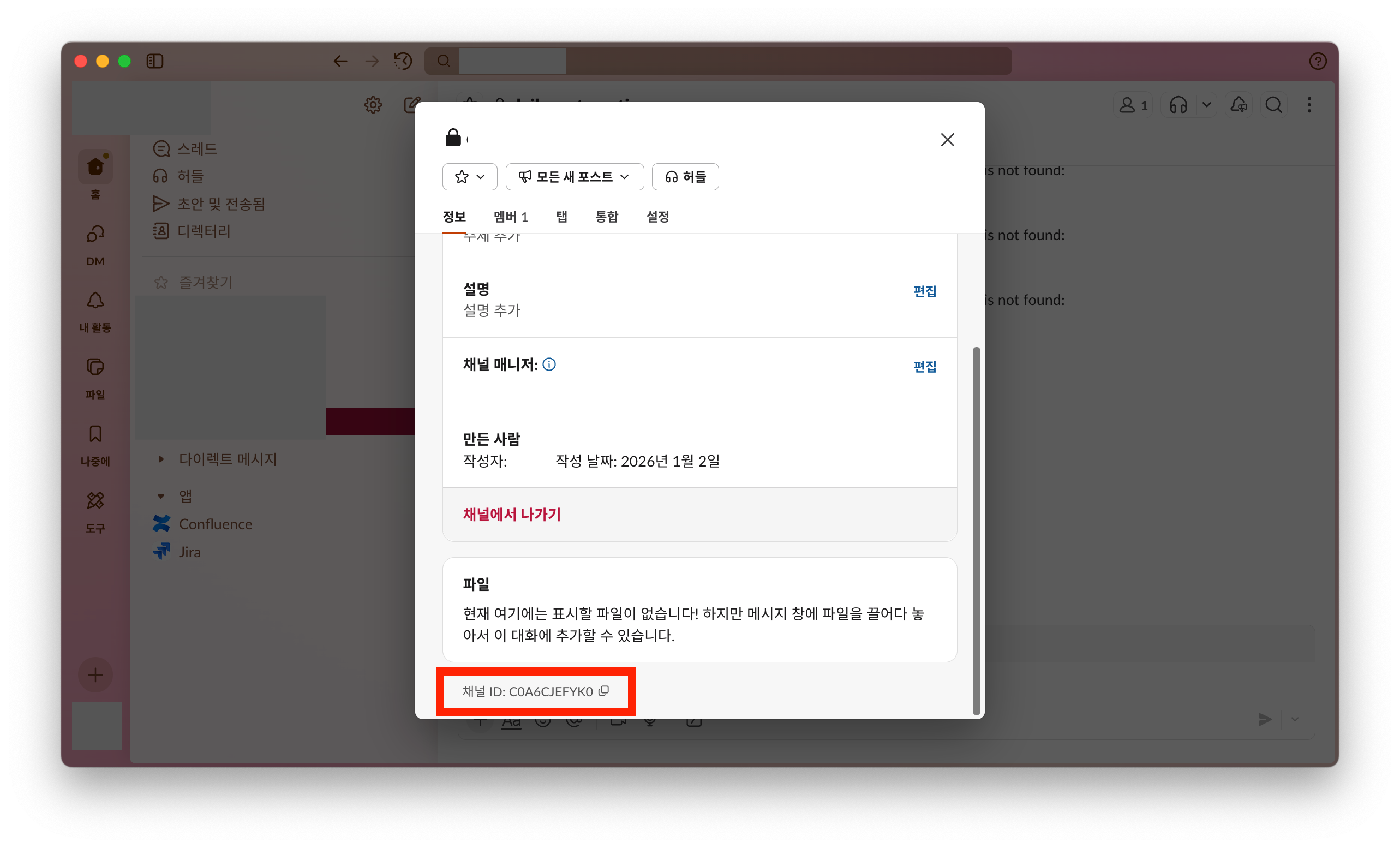 1. Slack에서 로그 메시지를 받을 채널 열기