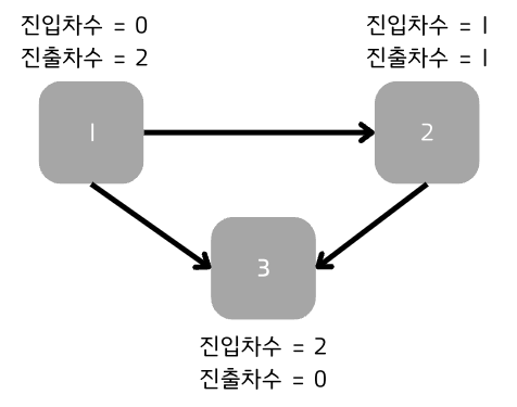 위상 정렬 동작 과정을 보기 전에 진입 차수와 진출 차수에 대한 개념을 먼저 알아 두어야 한다