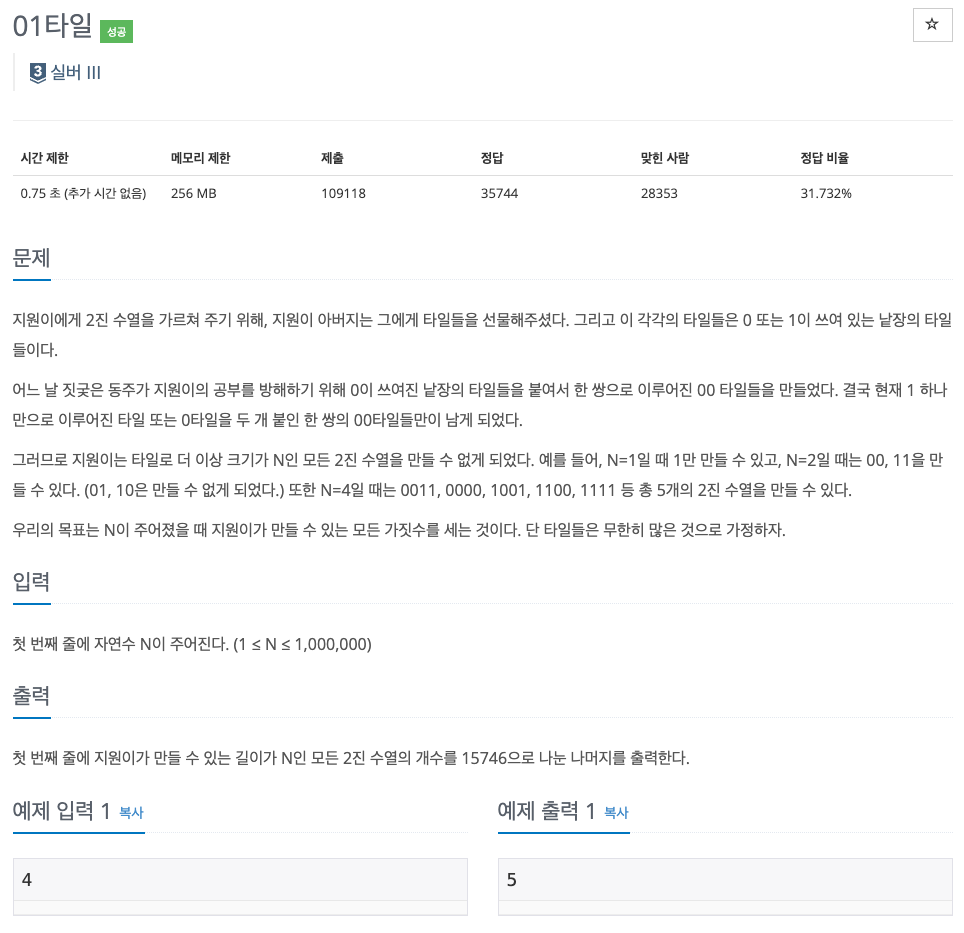 그 값을 15746로 나눈 나머지를 출력하는 문제