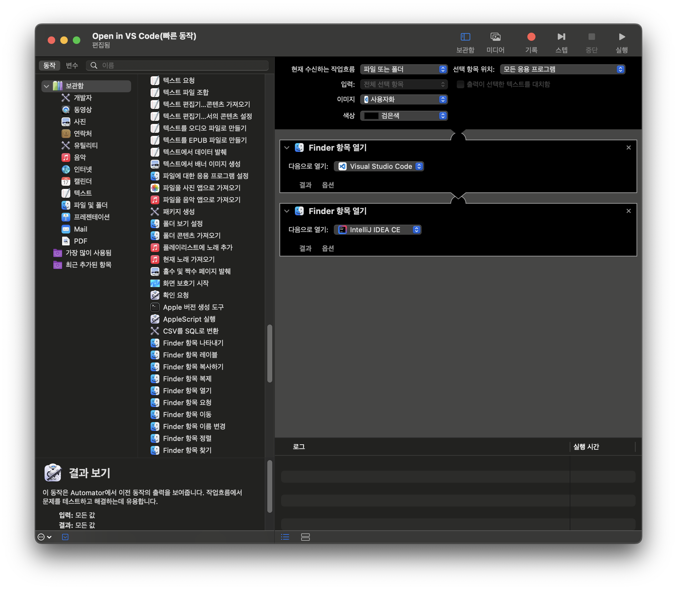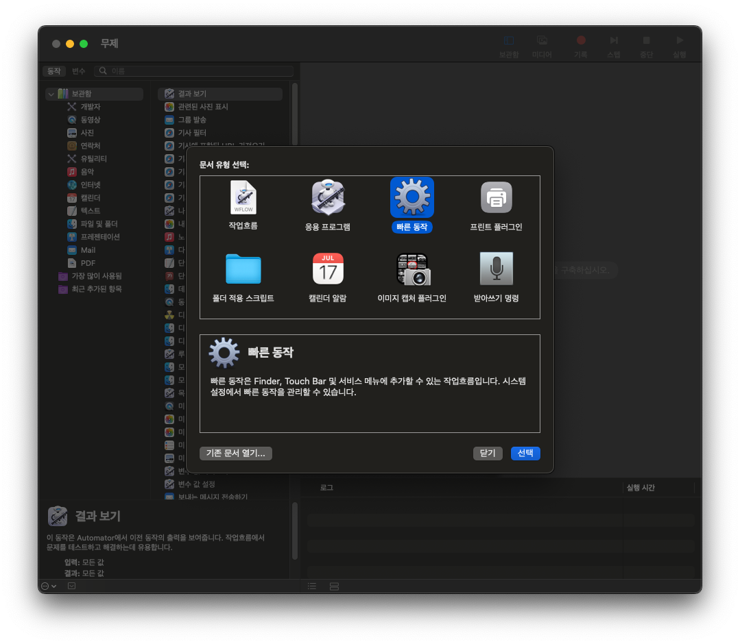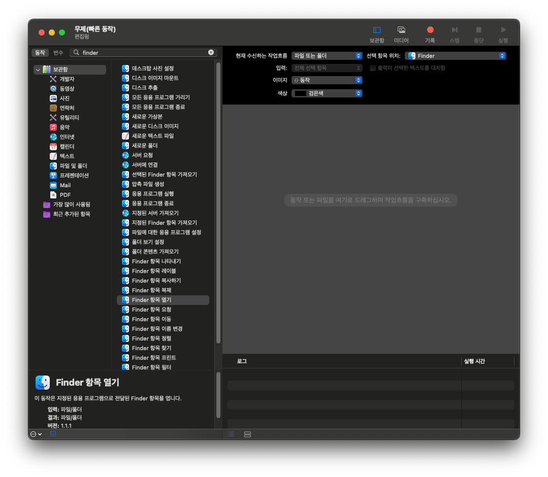 3. 현재 수신하는 작업 흐름 - 파일 또는 폴더/ 선택 항목 위치 - Finder