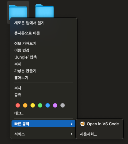 다음으로 열기 - 기타 - 응용 프로그램에서 VS Code 선택 후 저장