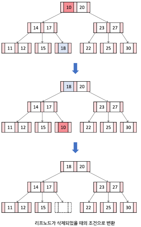 2. 리프 노드의 k 를 삭제하게 되면 리프 노드가 삭제 되었을 때의 조건으로 변한다