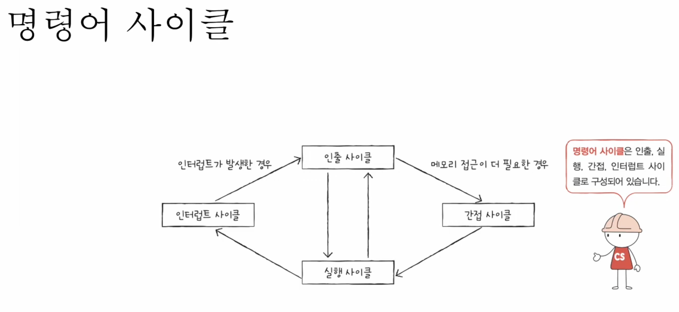 메모리 접근이 더 필요한 경우 간접 사이클을 거쳐 실행 사이클이 실행된다