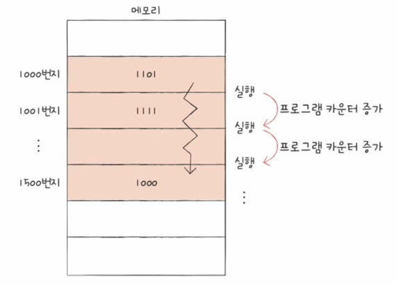 프로그램 카운터가 증가하면서 프로그램을 순차적으로 실행할 수 있다