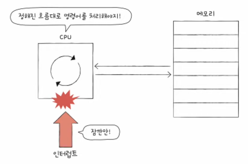 간혹 그 정해진 흐름을 끊는 흐름을 인터럽트라고 한다