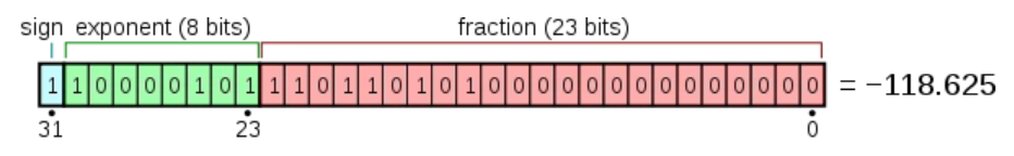 그래서 -118.625 의 지수는 6+127 = 133 = 10000101(2)