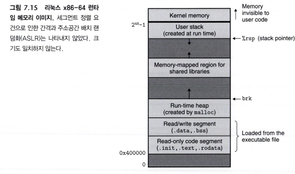 링커는 런타임 주소를 스택, 공유 라이브러리, 힙 세그먼트에 할당할 때, 주소 공간 배치 랜덤화 ASLR 를 사용한다