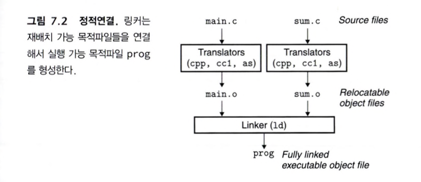 정적 링커들은 재배치 가능한 목적파일들과 명령줄 인자들을 입력으로 받아들여서 로드될 수 있고