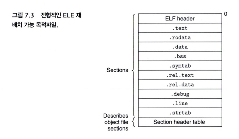 전형적인 ELF 재배치 가능 목적파일은 다음과 같은 섹션들을 포함한다