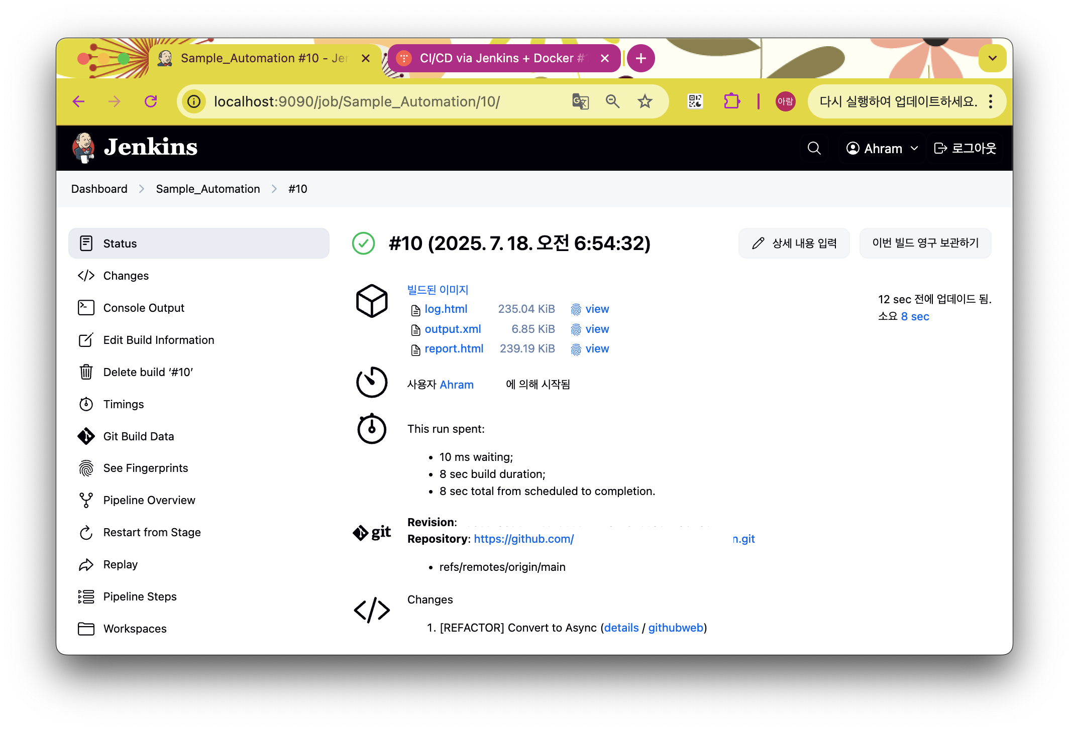계속 이어서 진행한다 https://helloahram.tistory.com/246 Jenkins #1 로컬 Docker 환경에서 Freestyle Job 실행해보기정글에서는 AWS Credit 을 받아 AWS 환경을 구성하고 Jenkins 도 설치했지만 여기서는 Local 환경에 Docker 를 이용하여 Jenkins 를 구성해보려고 한다 정글에서 진행한 CI/CD via Jenkins + Docker https://helloahram.tishelloahram.tistory.comhttps://helloahram.tistory.com/247 Jenkins #2 Github Repo 와 Jenkins 연동하기 - 실패 버전https://helloahram.tistory.com/246 여기서 이어서 진행 ..