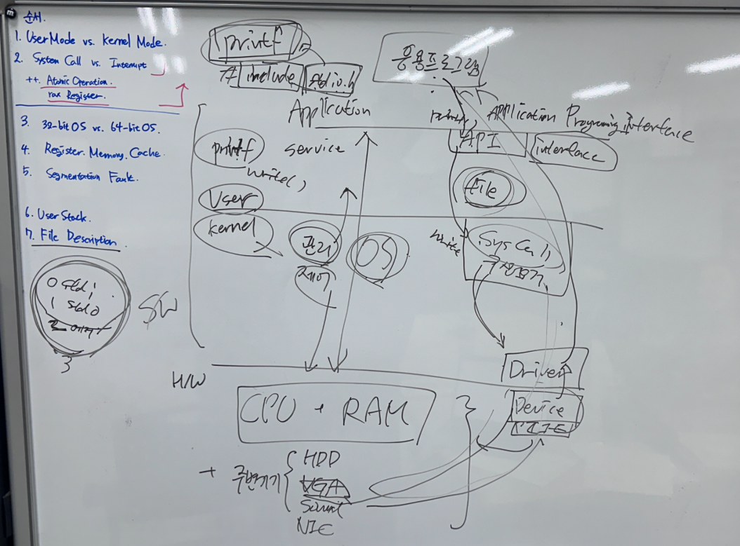 Week09-10 PintOS 키워드 정리 User Mode VS Kernel Mode컴퓨터의 프로세서는 실행 중인 코드 유형에 따라 User Mode 와 Kernel Mode 두 가지 모드로 작동한다 어플리케이션은 User Mode 에서 작동하고, 핵심 운영 체제 구성 요소는 Kernel Mode 에서 작동한다 커널 모드 Kernel Mode 하드웨어에 대한 완전한 접근 권한을 가진다 - 메모리, 프로세스 스케줄링, 파일 시스템 관리 등의 Low Level 작업 수행 Kernel Mode 에서 실행되는 모든 코드는 단일 가상 주소 공간을 공유하기 때문에, 커널 모드 드라이버는 다른 드라이버 또는 운영체제에서 격리되지 않아, 운영체제 또는 다른 드라이버에 속하는 데이터가 손상될 수 있다 (커널 모드 ..